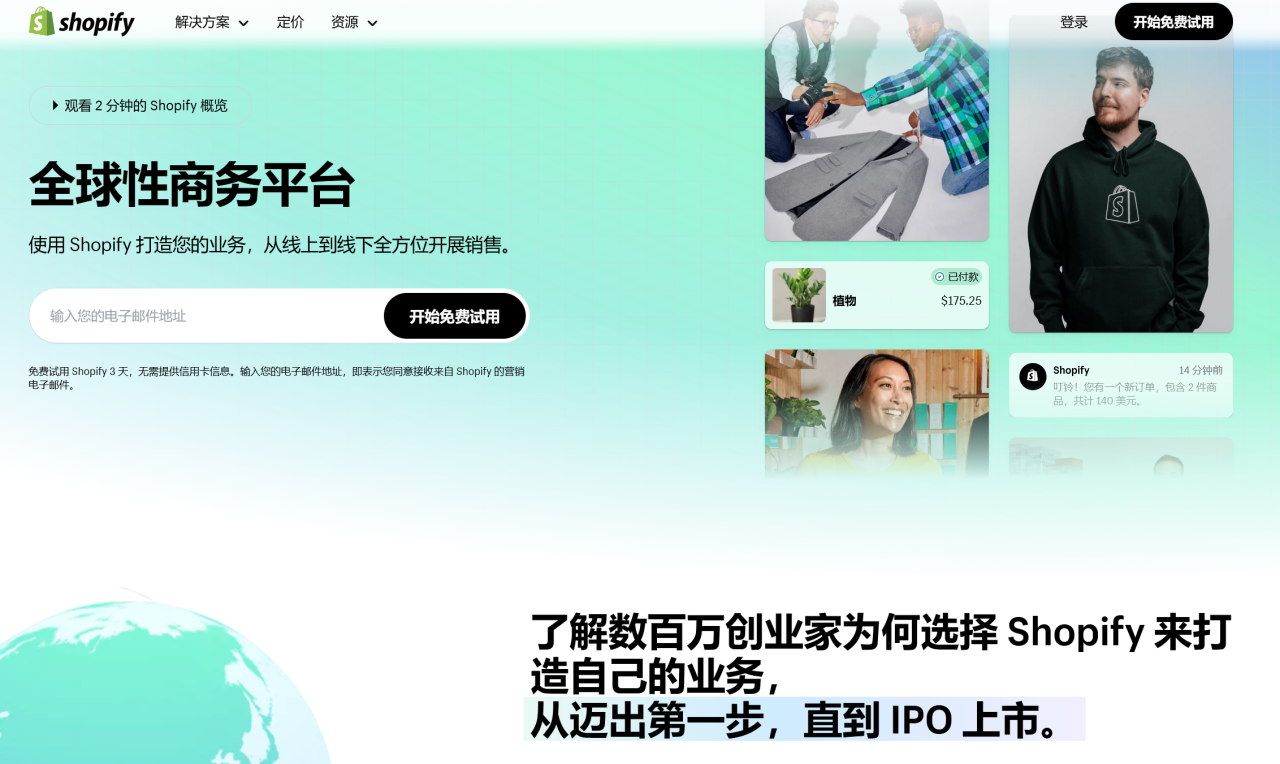 Shopify是一家全球领先的电商SaaS系统平台,提供了完整的电商解决方案,包括网站搭建、在线托管、支付处理、订单管理等功能。